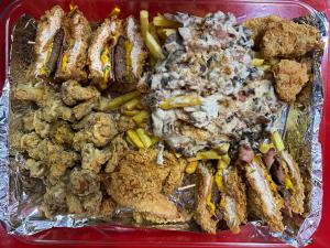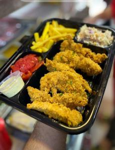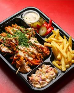 2 عددفیله 60 تا 70 گرمی، 4 عددبال سوخاری، 2 عددناگت مرغ به همراه دورچین سیب زمینی سرخ شده و سالاد و لیمو، ، بصورت پک کامل مناسب برای دو نفر