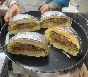 ساندویچ کتلت دوبل لبنانی با پنیر با دورچین کامل