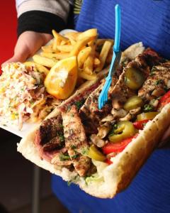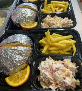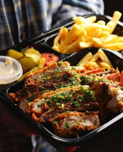سیب زمینی سرخ شده فرنچ با پنیر پیتزا و ژامبون و دلمه و قارچ سرخ شده با دورچین سالاد کلم و لیمو و سیب زمینی تنوری و .... بصورت پک کامل مناسب برای دو نفر