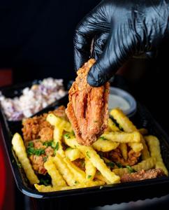 6 تکه بال و کتف سوخاری به همراه سیب زمینی سرخ شده با دورچین سالادو لیمو و، ، ، بصورت پک کامل، ،