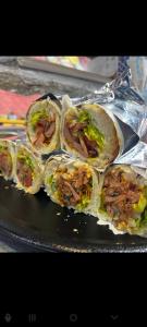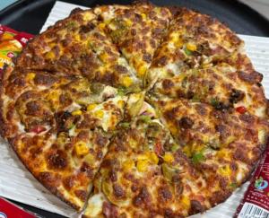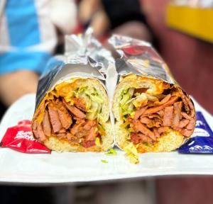 دبل دان برگر(سینه سوخاری مرغ دو عدد ۳۰۰ گرم به همراه پنیر گودا سه عدد،ژامبون سه عدد و یک عدد همبرگر ذغالی دست ساز،سس سبزیجات،کچاب،جعفری)+سیب زمینی ویژه(سیب زمینی با قارچ و پنیر و ژامبون و جعفری)+پاپ کورنی شش عدد+فیله استریپس سه عدد+دو عدد سوسیس پنیری+قارچ سوخاری+سالاد کلم و سس مخصوص و تند و تک نفره و نان