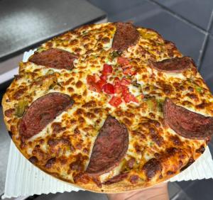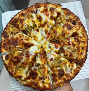 یک عدد همبرگر ۹۵٪ گوشت شرکتی مام با قارچ و پنیر و ژامبون بدون دورچین