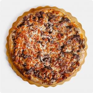 فیله گوساله، گوشت چرخ کرده، بیکن، پپرونی، قارچ، پیاز، سس سیر، سس مخصوص، پنیرموزارلا، سس بیانر، ، ،