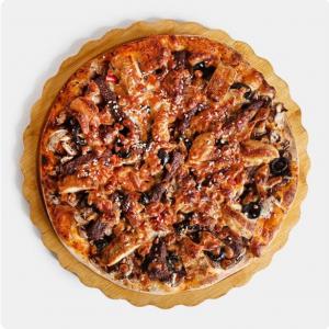 راسته گوساله گریل شده (تنوری) مرغ گریل شده، فلفل آفریقایی، پیاز، قارچ، گوجه فرنگی، پنیر موزارلا، سس مخصوص، ادویه مخصوص و، ، ،