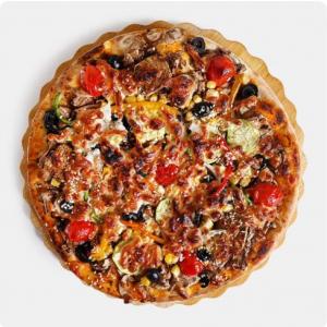 قارچ، گوجه، بادمجان، فلفل دلمه، پیاز، ذرت، زیتون سیاه، سس مخصوص، سس پستو