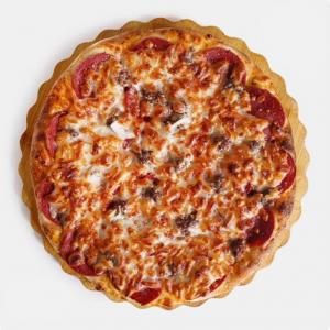 گوشت چرخ کرده تند، فلفل تازه تند، فلفل دلمه، گوجه گیلاسی، پیاز، قارچ، پنیر موزارلا، سس مخصوص، ادویه مخصوص