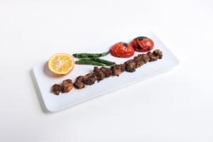یک سیخ چنجه فیله، گوجه، قارچ، فلفل، کره، نان