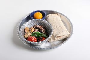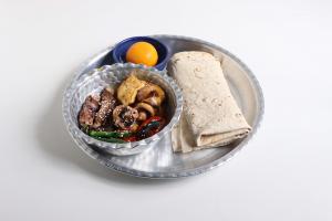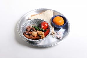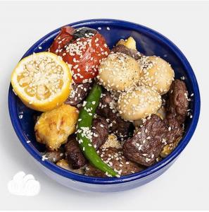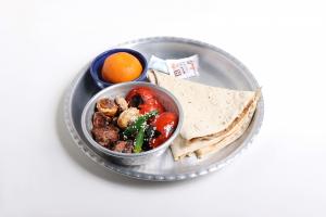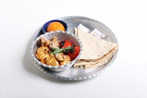 یک سبخ جوجه فسنجانی ۲۰۰ گرمی، گوجه، قارچ، فلفل، کنجد، کره، نان