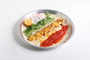 یک سیخ جوجه ترش ۲۰۰ گرمی، گوجه، قارچ، فلفل، کنجد، کره، نان