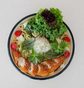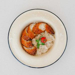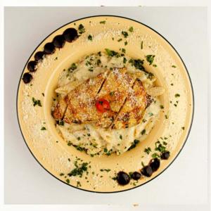 چاپاتا/کره/سينه مرغ گريل/قارچ/سس سبز/آلفردو/زيتون/پنير خامه اي/خردل/پنير پيتزا/سبزيجات