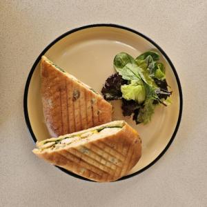 چاپاتا/سس سبز/فيله مرغ گريل/پنير ورقه اي/بادمجان/اسفناج/خردل/پنير خامه اي/کره
