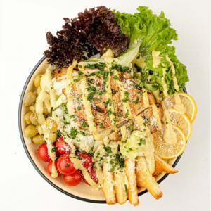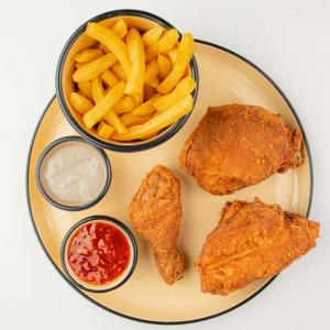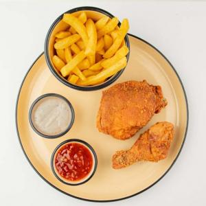 2 قطعه مرغ سوخاری، سالاد کلم، سیب زمینی، نان