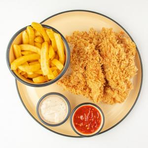 ۳ قطعه مرغ سوخاری، سالاد کلم، سیب زمینی، نان