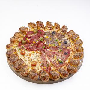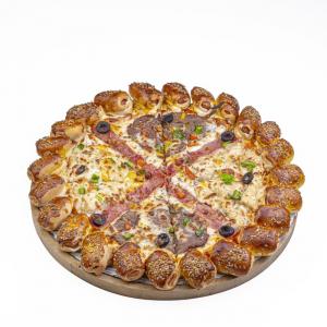 استيک گوشت+مرغ کبابي+بيکن+سوسيس انگشتي+پنير+قارچ+فلفل دلمه+زيتون سياه