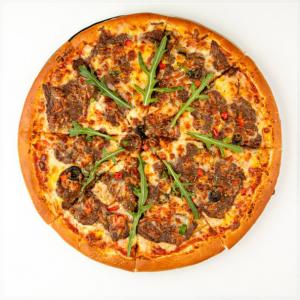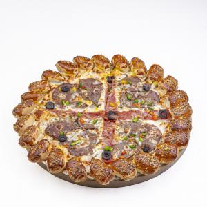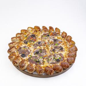 استيک گوشت+بيکن+سوسيس انگشتي+پنير+قارچ+فلفل دلمه+زيتون سياه