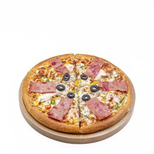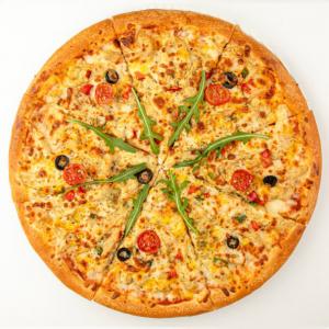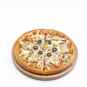 مرغ کبابي+سوسيس انگشتي+پنير+قارچ+فلفل دلمه+زيتون سياه