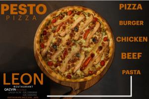 سینه مرغ، استیک گوشت، قارچ، زیتون، گوجه گیلاسی، فلفل دلمه ای، پنیر موزارلا، سسس پستو