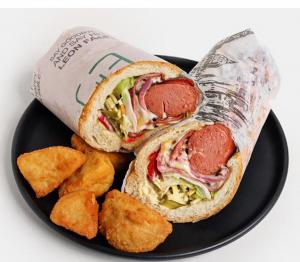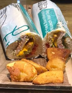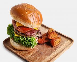 برگر دست ساز، چوریتسو، پنیر گودا، کاهو، خیارشور، گوجه، سس مخصوص