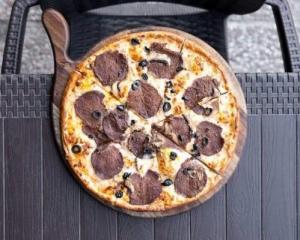 استیک گوشت + ژامبون گوشت + سوسیس ژاپنی + فلفل دلمه ای + قارچ + پنیرموزارلا + سس گوجه فرنگی