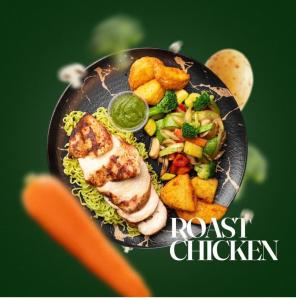سینه مرغ + پوره سیب زمینی + فتوچینی + سس سبزیجات اورگانیک