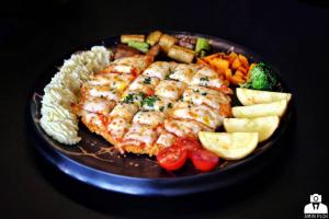 فیله گوساله + قارچ + زیتون + پنیر میکس + سس سیر