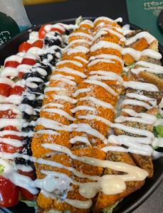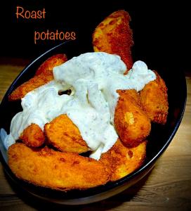 3 عدد رول مرغ سوخاری + سیب زمینی + سس سیر + سس قرمز
