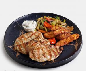 سینه مرغ گریل + پوره سیب زمینی + سبزیجات + سس قارچ