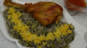 یک عدد ران سس پز شده 350 گرمی مرغ، 350 گرم باقالی پلو با برنج ایرانی