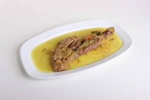 400 گرم باقالی پلو،یک عدد ماهیچه گوسفندی با استخوان سس پز شده،دورچین