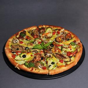 سس پستو، کدو و بادمجان گریل شده، کلم بروکلی، ذرت، فلفل دلمه ای گوجه گیلاسی، نخود فرنگی، قارچ، زیتون