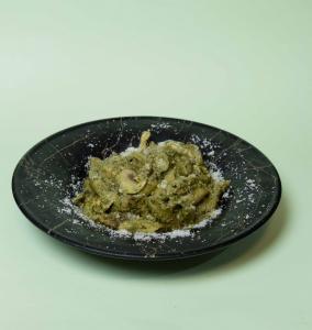 سینه مرغ.قارچ.سس پستو.پنیر پیتزا