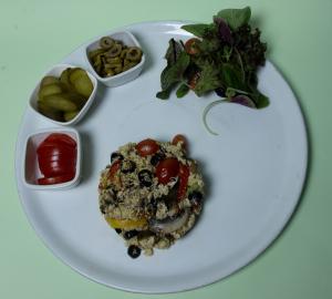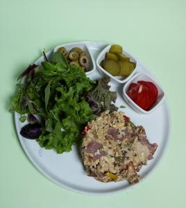 کاهوپیچ.سینه مرغ گریل.کاپاریس.سس بادام زمینی