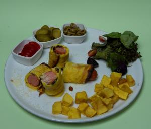 شنیسل،رول سوخاری،فیله استریپس،سبزیجات ،سیب زمینی