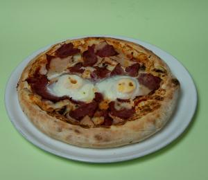 گوشت راسته.پنیرموزارلا.قارچ.فلفل دلمه.زیتون. سس مارینا