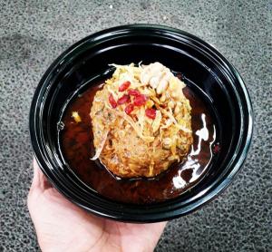 ۵۰۰ گرم برنج هاشمی ، ۳۰۰ گرم خورشت ( گوشت گرم ، لپه ، قوره ،بادمجون )