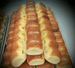 بافت شیرینی لایه ای، با طعم وانیل و موز اسلایس شده