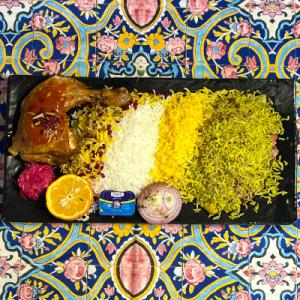 چلو جوجه کباب زعفرانی+باقالی پلو سفارشی با گردن گوسفندی ویژه