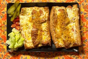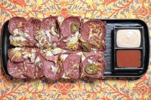 فیله زبان رست و طعم دار+قارچ+پنیر پیتزا+سس ویژه+فلفل دلمه+زیتون