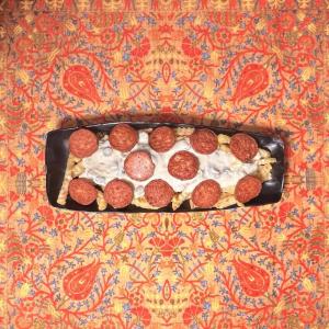 ماهیچه سردست طعم دار +پنیر پیتزا مخصوص + فلفل دلمه + قارچ + زیتون + سس ماشروم