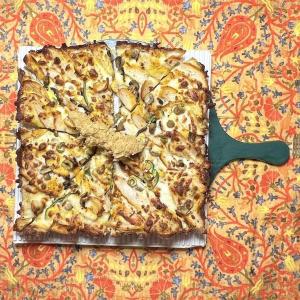 پنیر پیتزا مخصوص + مرغ فراوری شده + قارچ + گوجه + فلفل دلمه ای + سس ویژه