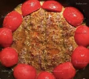 يك عدد کباب تابه ای پخته شده با گوشت گرم به وزن ۲۵۰ + دو عدد گوجه سرخ شده