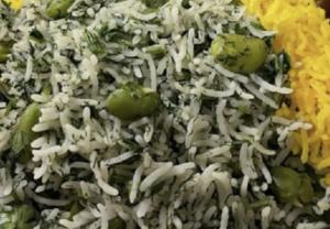 ۳۰۰ گرم برنج ایرانی هاشمى +۵۰ گرم باقالی + شوید و ادویه