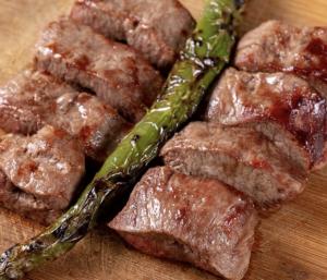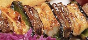 فيله گوساله مرينت شده ١٥٠ گرم + فيله مرغ زعفرانى ٢٠٠ گرم + فلفل دلمه و پياز كبابي
