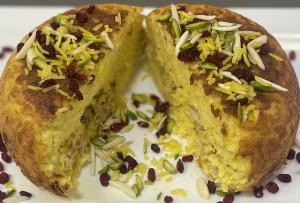 برنج مخلوط با مواد ته چين ٢٥٠ گرم+ خورشت قيمه ١٠٠ + زرشك +ادويه