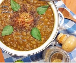 عدسی و پیاز داغ و کره و نان داغ سنگک