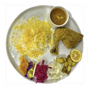 فیله مرغ300گرم،برنج ایرانی450گرم،گوجه کبابی،لیموترش،ته چین،خیارشور،پیازجعفری،ترشی کلم،فلفل کبابی،کره