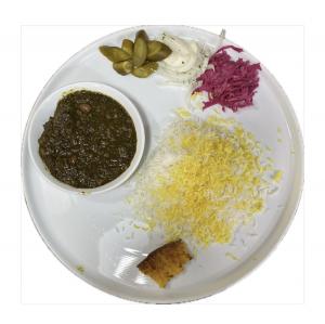 فیله گوسفندی300گرم،برنج ایرانی450گرم،ته چین،گوجه کبابی،لیموترش،خیارشور،پیازجعفری،ترشی کلم،فلفل کبابی،کره