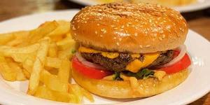 یک عدد برگر دست ساز گوشت گوساله ذغالی 170 گرمی، پنیر ، کاهو، گوجه، خیارشور، سس مخصوص، نان گرد