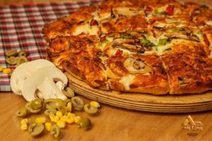قارچ، فلفل دلمه، پیاز، گوجه فرنگی، ذرت، پنیر
