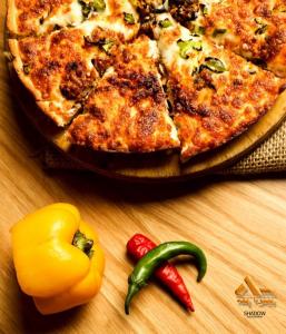 ژامبون استیک، فلفل ترشی تند، فلفل دلمه، قارچ، پنیر